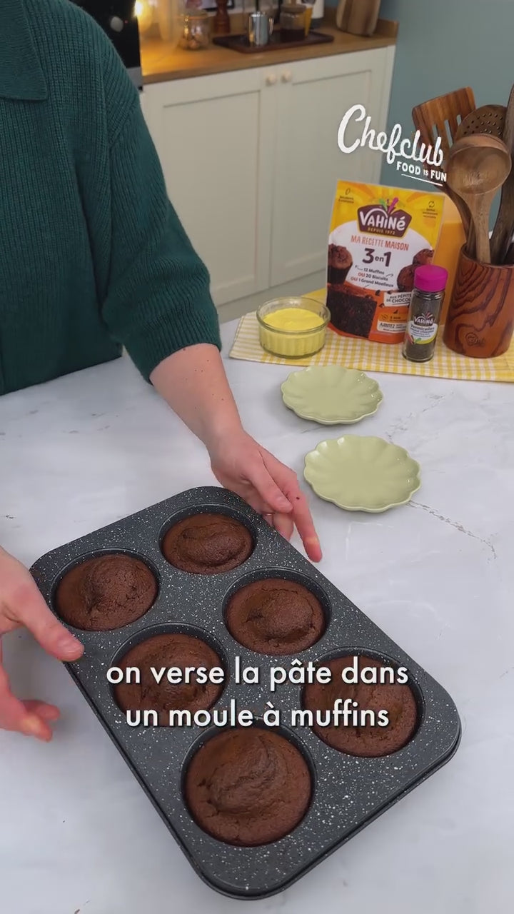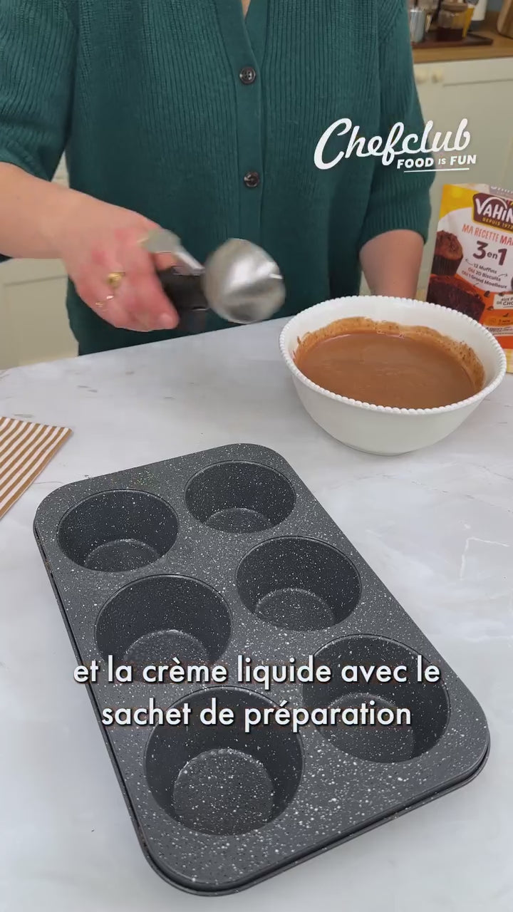 - Versez la préparation dans le moule à muffins et enfournez 12 minutes à 180 °C (Th.6).