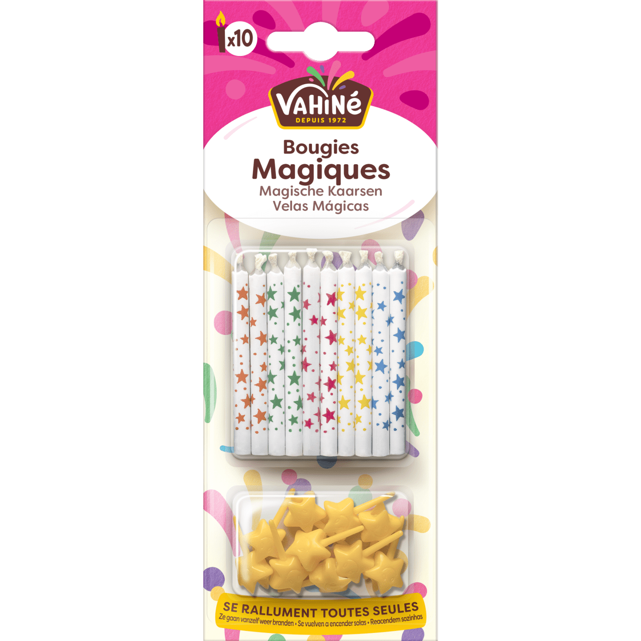 Ces dix bougies magiques Vahiné aux motifs d'étoiles multicolores s'éteignent et se rallument toutes seules. Elles décorent vos gâteaux tout en apportant une vraie touche de gaieté et de fantaisie à vos anniversaires.