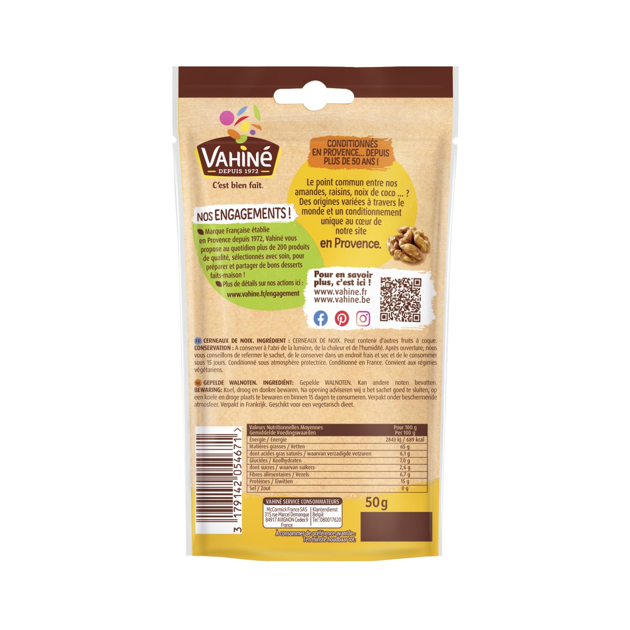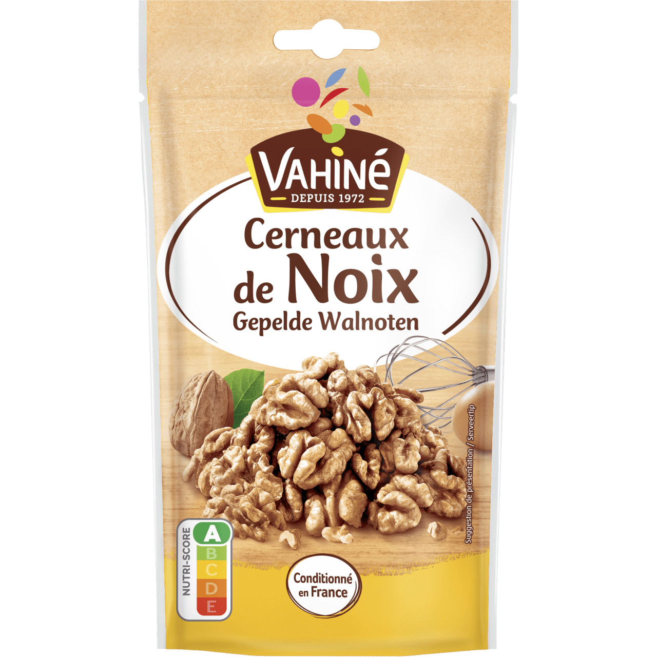 Plus de 40 ans d'expertise pâtissière Vahiné! Délicatement décortiquées en cerneaux, les noix Vahiné apporteront une texture croquante et un goût raffiné à vos desserts. Vahiné, c'est gonflé!.