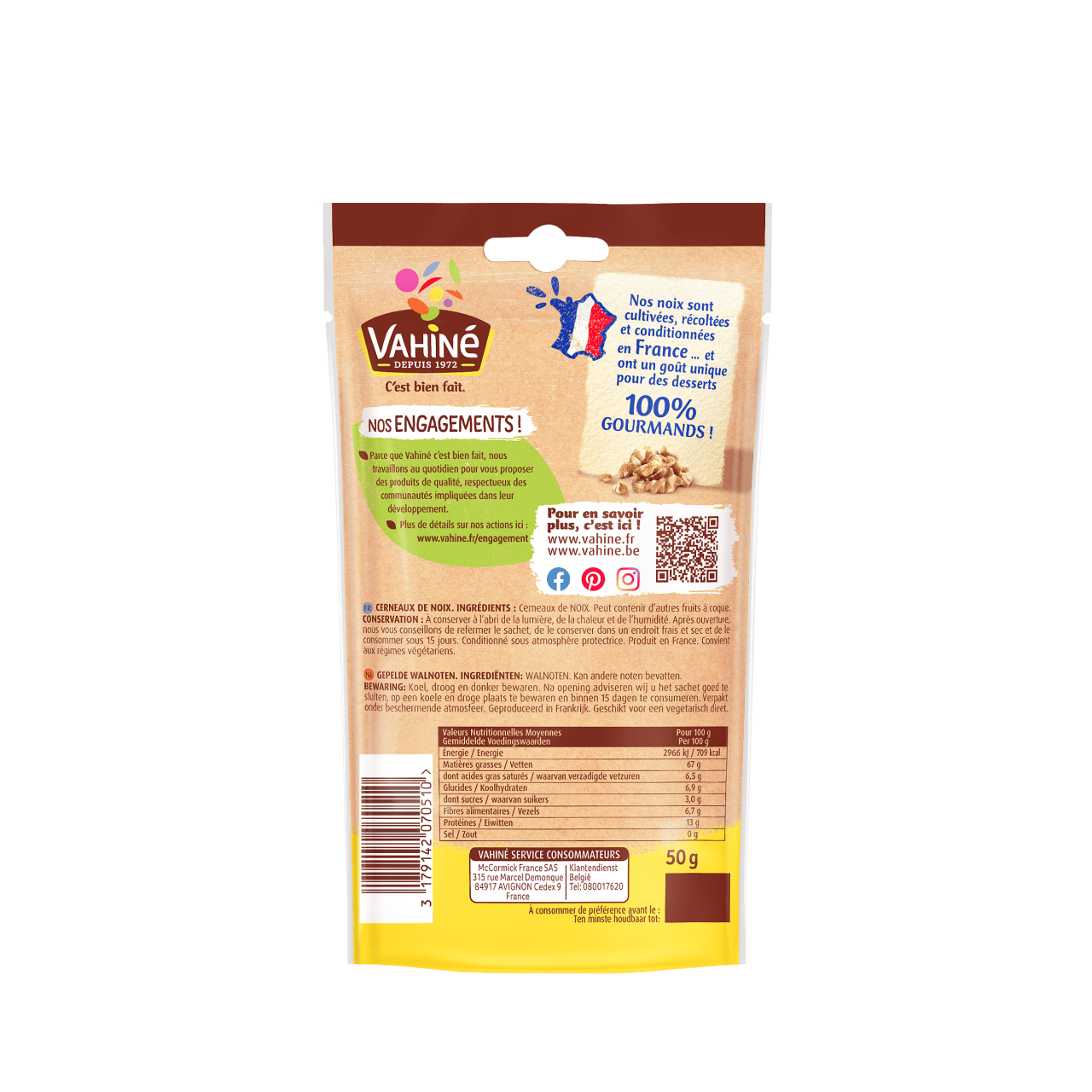 Découvrez ces cerneaux de noix cultivées, récoltées et conditionnées en France pour préparer des desserts gourmands. Ajoutez ces cerneaux de noix sans modération dans vos brownies ou cookies, pour un résultat 100% croquant !