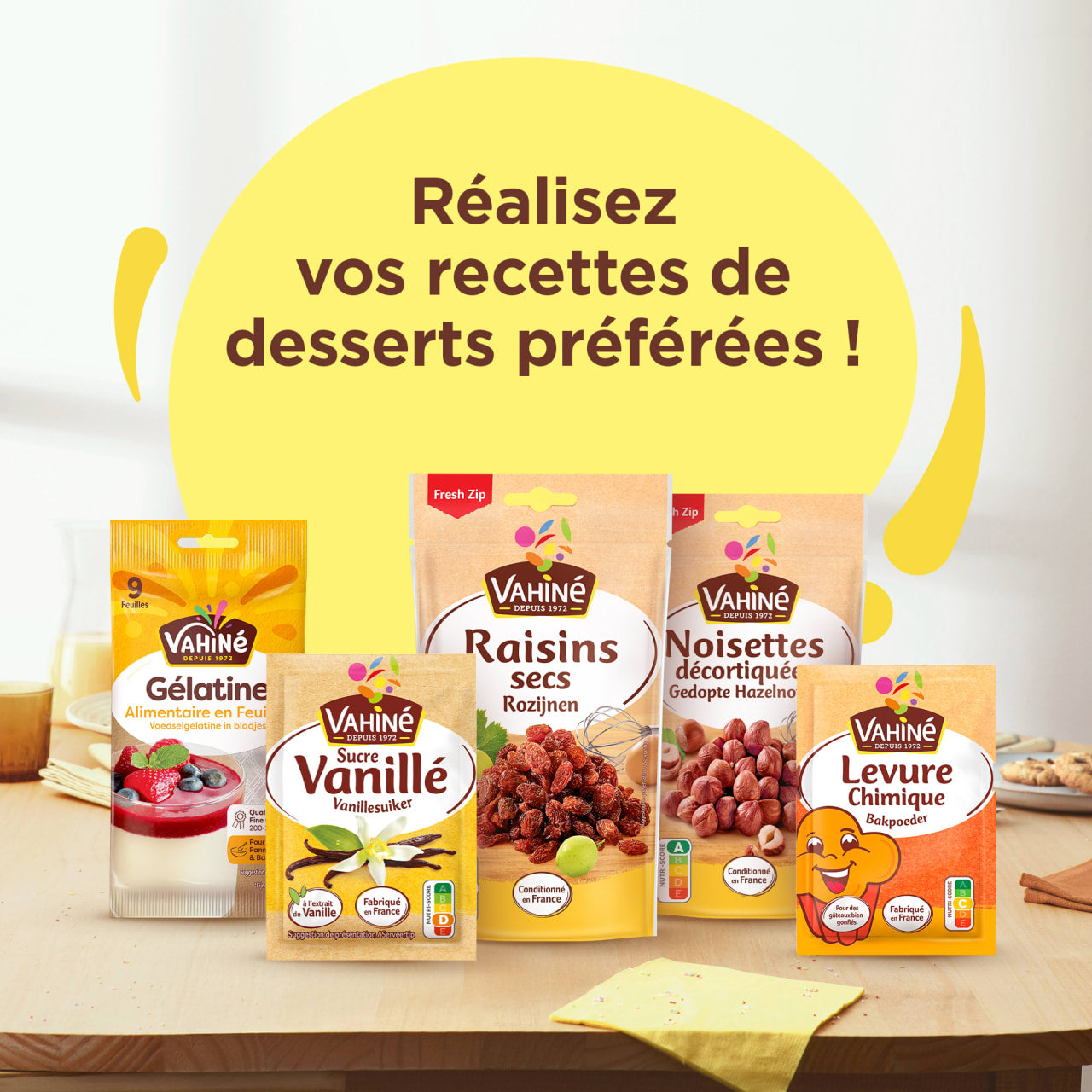 Aucune préparation nécessaire. La Levure Chimique Vahiné est prête à l’emploi et assure un dosage facile grâce à ses 5 sachets pratiques. Un sachet de 11 g suffit pour 500 g de farine maximum, à incorporer directement dans la pâte avant cuisson. Idéale pour réaliser gâteaux, génoises, biscuits, muffins ou brioches maison, elle garantit un résultat léger et bien levé à chaque utilisation. Fabriquée en France, elle se glisse facilement dans toutes vos préparations sucrées. Découvrez nos idées recettes sur www.vahine.fr.