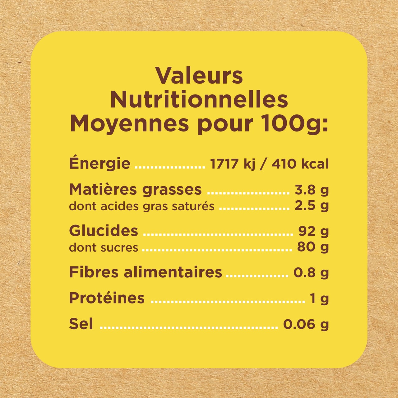 Perles de confiserie multicolores : Sucre, amidon de BLE et de maïs, sirop de glucose, jus de betterave rouge concentré, agent d'enrobage : cire d'abeille, huile végétale (colza, noix de coco), colorants : anthocyanes, complexes cuivriques de chlorophyllines, riboflavine." Vermicelles de confiserie saveur chocolat : Sucre, poudre de cacao maigre (7%), sirop de glucose, huile végétale (noix de coco, colza), émulsifiant : lécithine de tournesol. Etoiles de confiserie : Sucre, farine de riz, beurre de cacao, épaississant : gomme adragante, colorant : carotenoïdes, arôme naturel de vanille. Billes de céréales enrobées : Sucre, billes de céréales (farine de riz, farine de BLE, gluten de BLE, fibre de BLE, farine de malt d'ORGE, sucre, sel), beurre de cacao, agent d'enrobage : shellac, colorants : rouge de betterave, carmins, complexes cuivriques de chlorophyllines, extrait de paprika, lutéine.