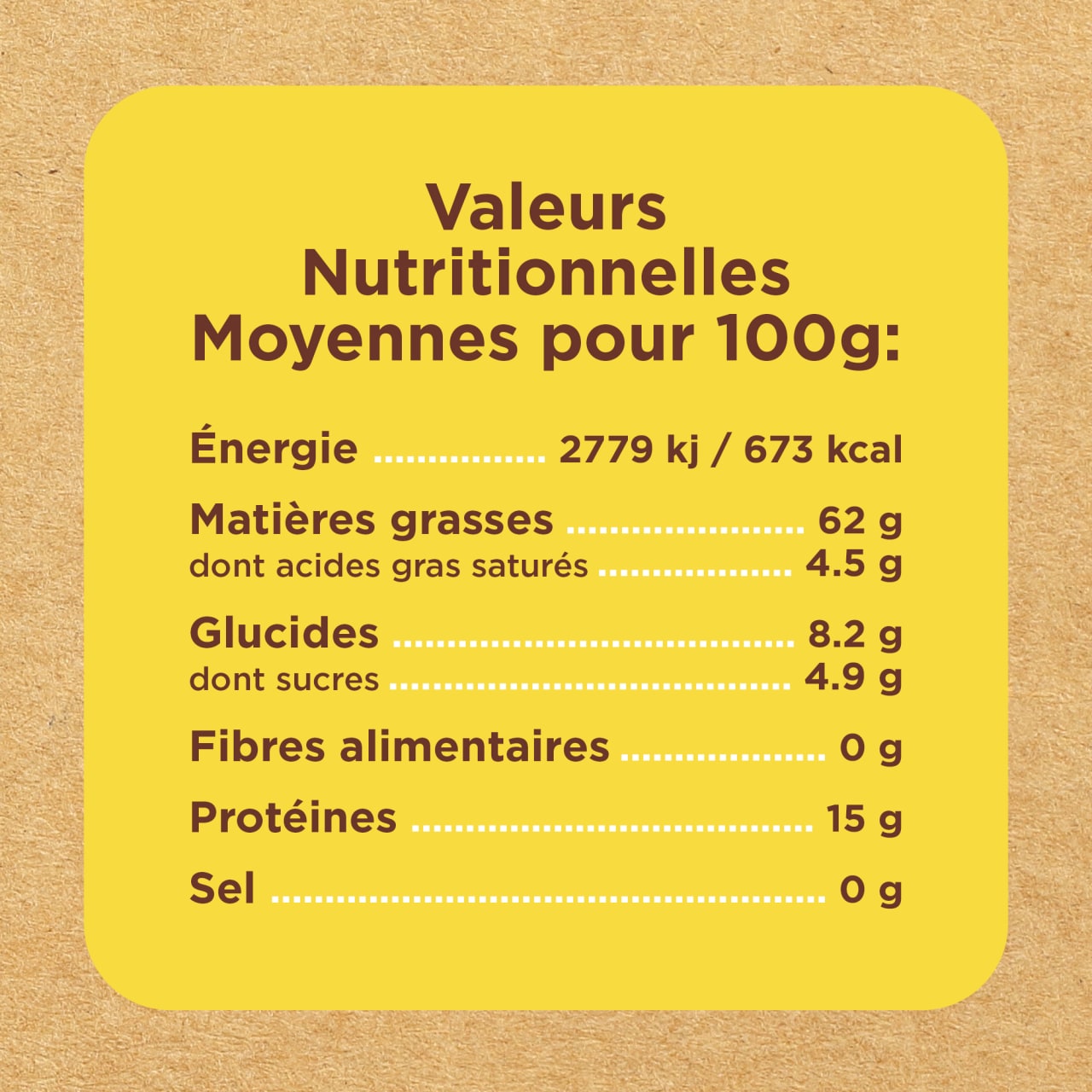Nos noisettes sont 100% naturelles, sans colorant* ni conservateur et 100% issues de l'agriculture biologique. Elles sont récoltées à maturité dans le respect de l'environnement afin de préserver l....