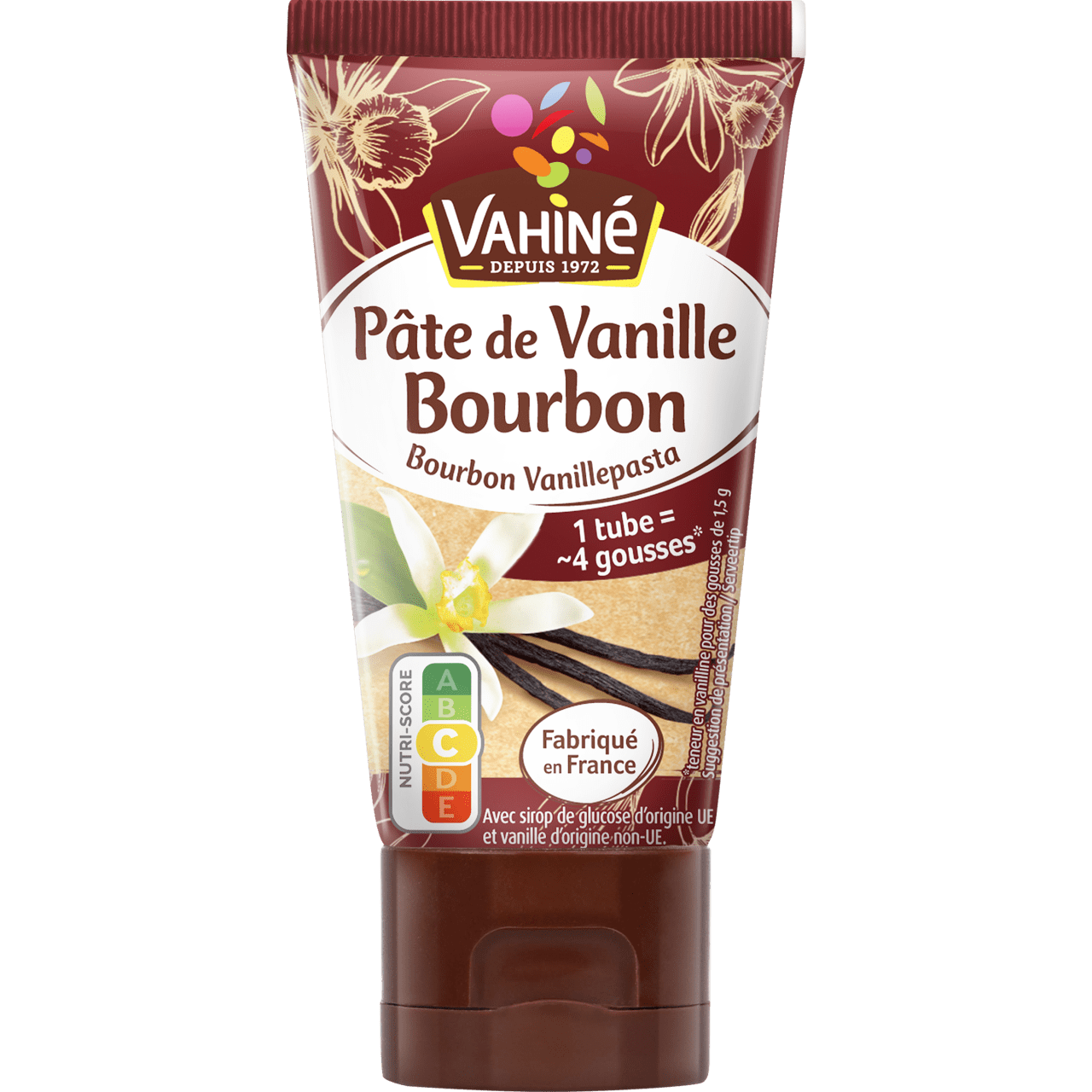 Découvrez la Pâte de Vanille Bourbon Vahiné, très simple d'utilisation. Ce tube de vanille équivaut à 4 gousses de vanille (équivalence vanilline pour des gousses de 1,5g). Idéal pour la préparation de vos crèmes, crêpes, gâteaux… Notre Pâte de Vanille se marie parfaitement avec tous vos desserts. Goûtez l'intensité de la Pâte de Vanille Bourbon dans les recettes d'îles flottantes ou de glace à la vanille. Découvrez aussi notre gousse de Vanille Bourbon Grand Cru d'Exception Extra Charnue pour des recettes pleines de goût.