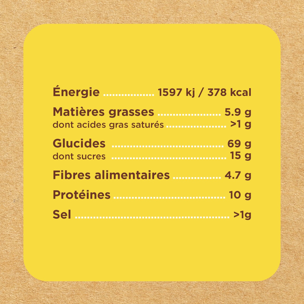 Peut contenir blé, lait, soja, noisette et autres fruits à coques.