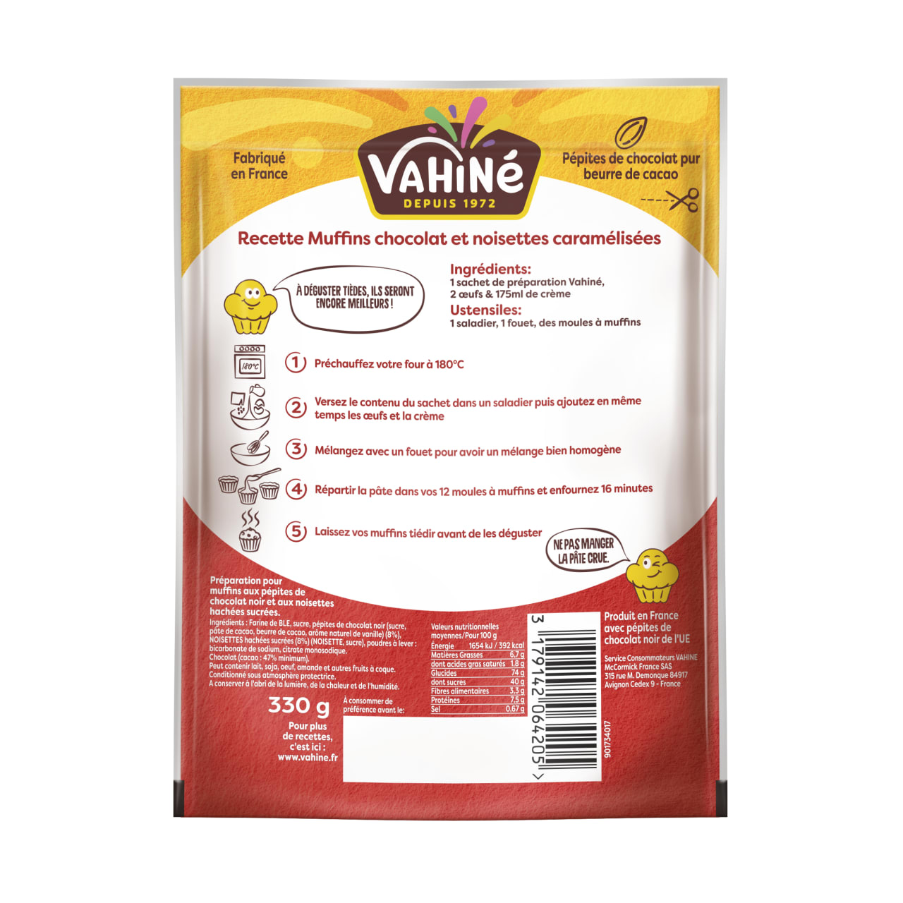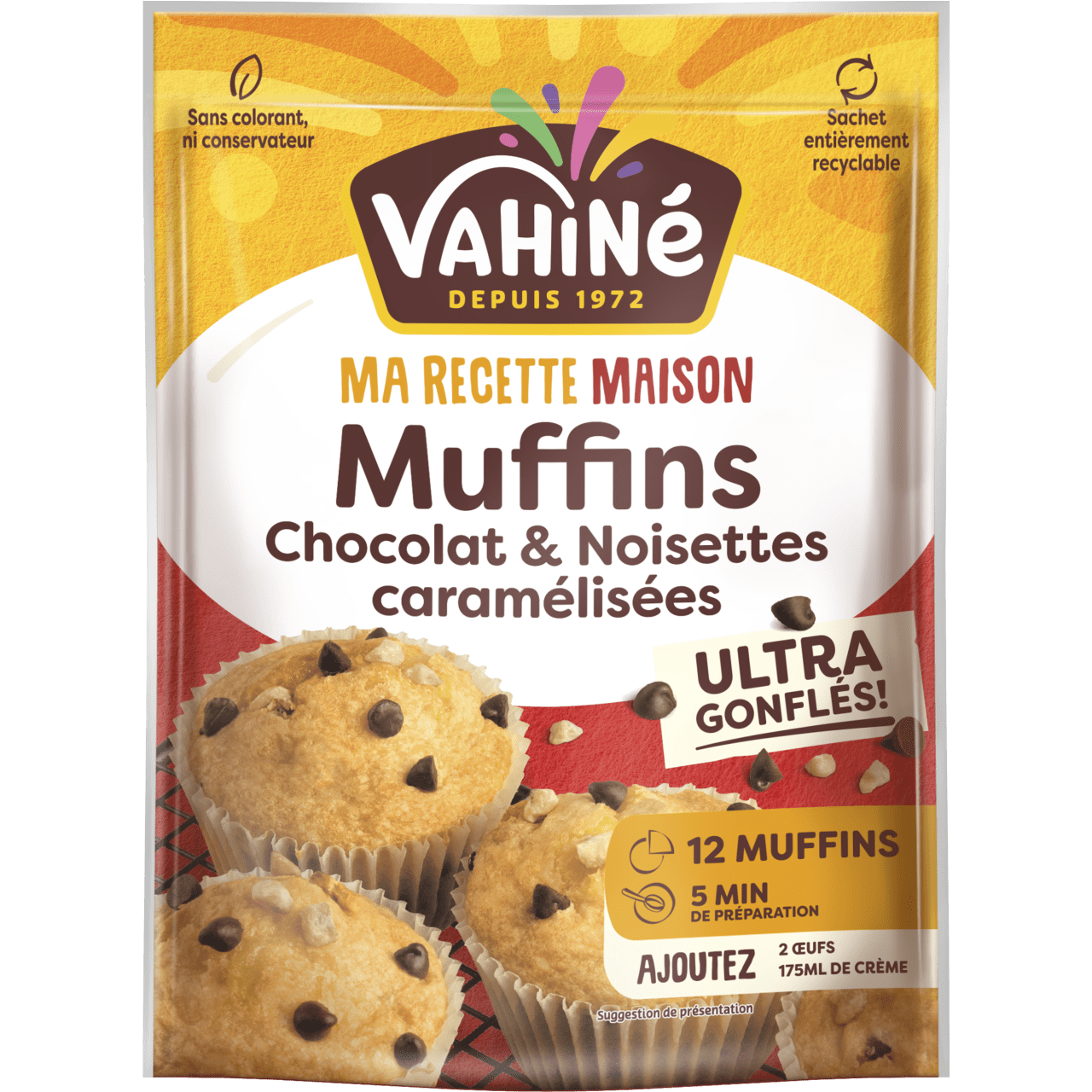 Associez praticité et plaisir de faire plaisir pour des goûters maison réussis. Seulement deux ingrédients à ajouter et obtenez une semaine de goûter prête à déguster ! Préparation pour Muffin choco-noisettes caramélisées, parmi le top des recettes préférées des enfants, garantie ultra-gonflé !