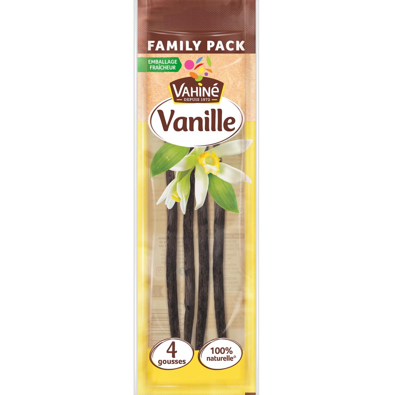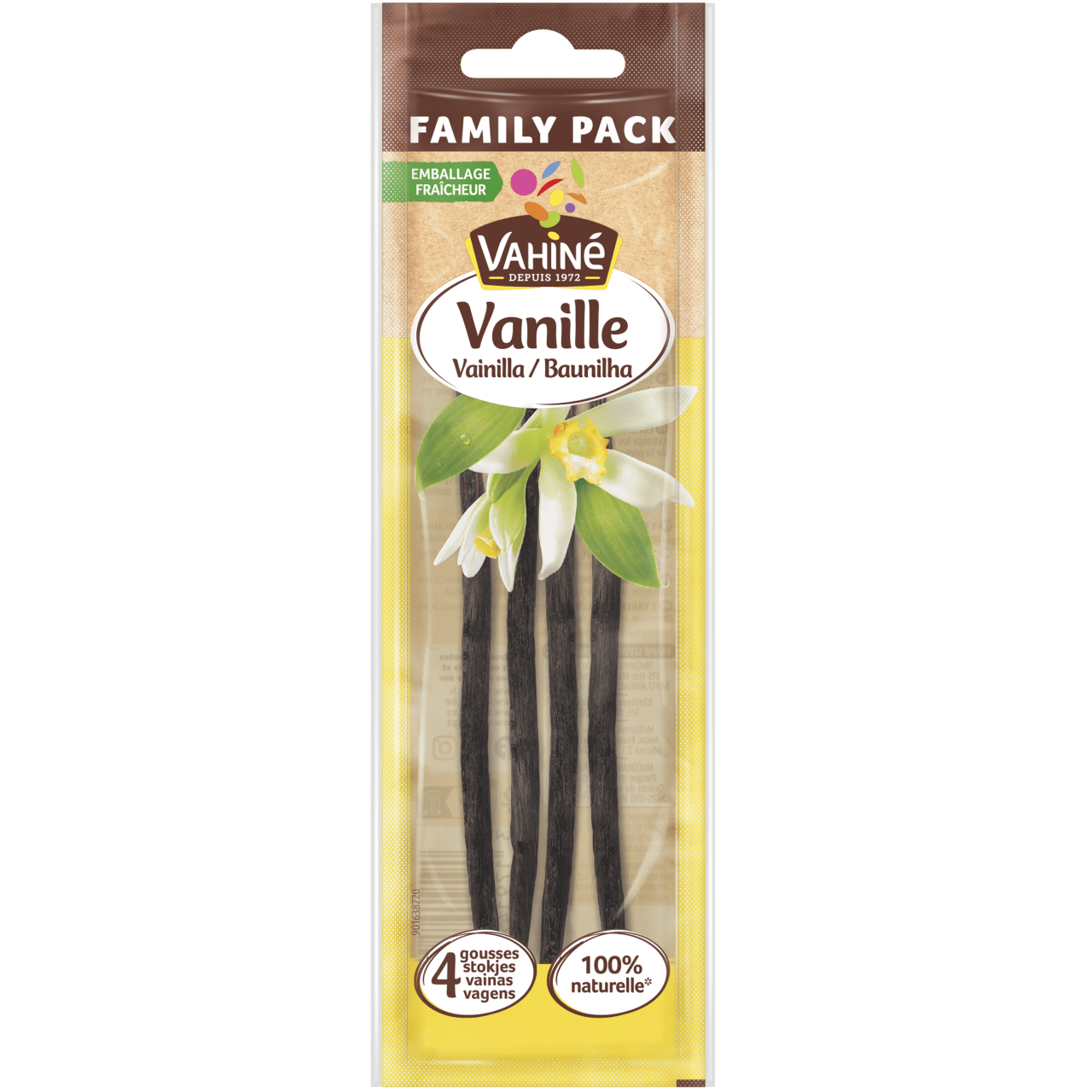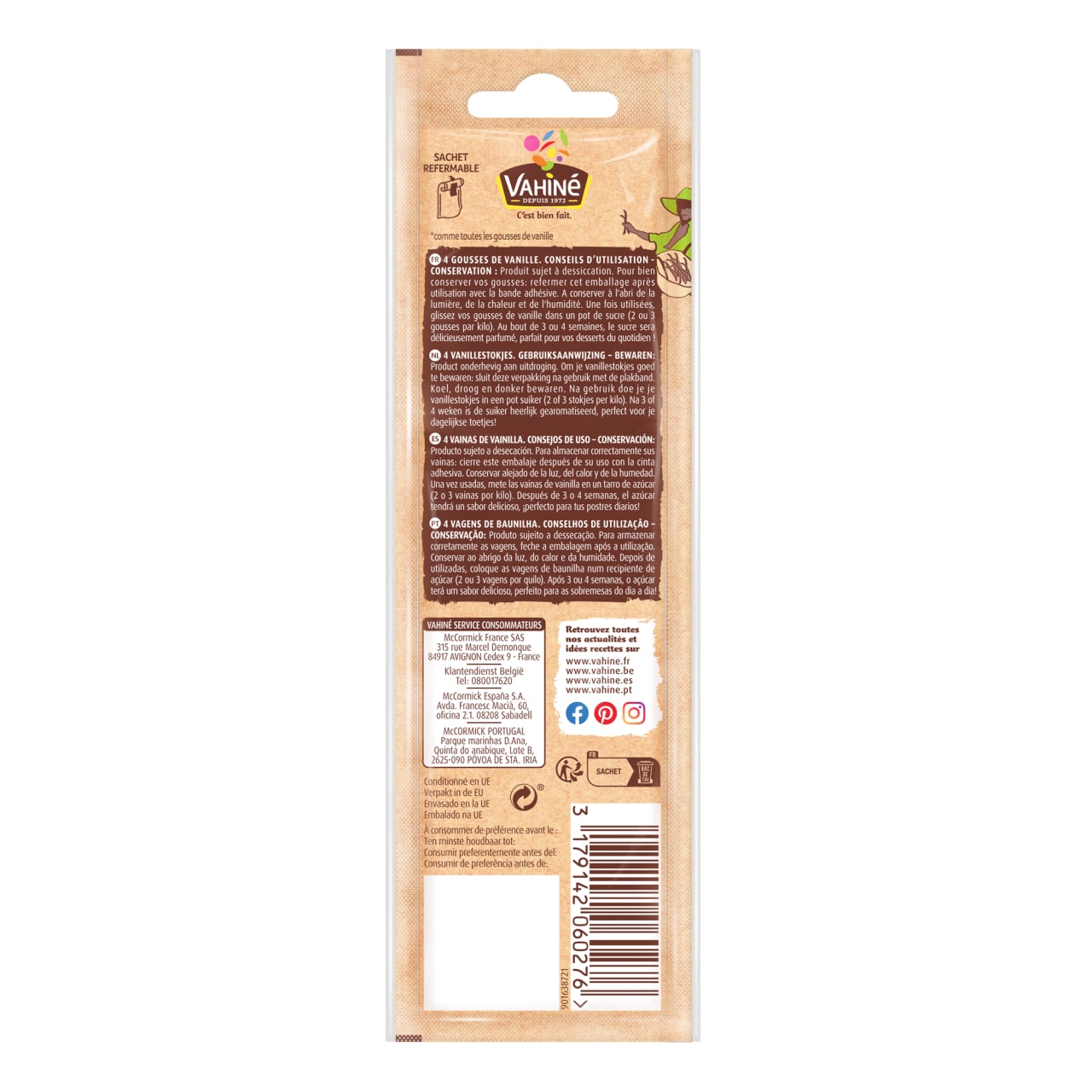 Aucune préparation nécessaire. Les Gousses de Vanille Vahiné Maxi Format sont prêtes à l’emploi pour parfumer vos recettes maison. Fendez une gousse sur la longueur, grattez les grains et ajoutez-les dans une préparation chaude comme un lait ou une crème, puis laissez infuser. Une gousse suffit généralement pour environ ½ litre de préparation. Après utilisation, glissez deux ou trois gousses dans un pot de sucre pour obtenir un sucre vanillé maison au bout de 3 ou 4 semaines. Leur emballage fraîcheur refermable permet de préserver la qualité et l’arôme des gousses après ouverture. Retrouvez nos idées recettes sur www.vahine.fr